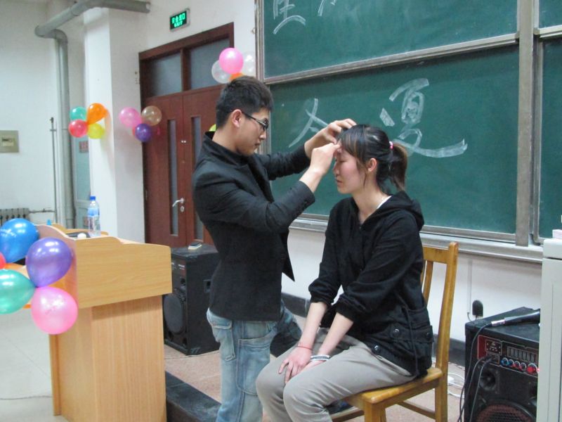 同学们为什么想要化妆?淡化瑕疵,在校园里成为闪亮的焦点,在职场中拥有干练的形象,化妆满足了自身与社会的需求,也逐渐成为女生们不得不会的技能。让大家了解到化妆的重要性后,明明老师请上了一名同学当模特以做化妆示范。在这个过程中,明明老师向同学们详细介绍了化妆的每个步骤:首先要进行整体观察;然后依次按照护肤,底妆,定妆,眼妆,腮红,唇,眉的步骤进行;最后通过整体修饰后,台上的同学左右脸的对比令在场的观众为之一震。明明老师幽默的语言,亲切的口吻,现场的示范都让在座同学更直观、更深刻地看到了美容化妆的魅力。讲座即将结束时,明明老师建议同学们不要只是单纯的学习理论,要真正的去尝试,才能成为时尚达人。