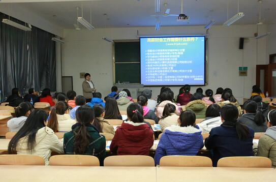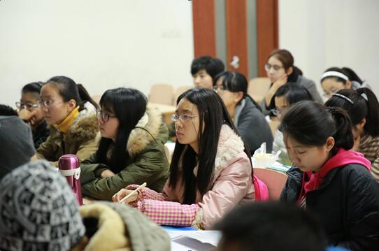 在热烈的掌声中,合作方美国Lambers CPA Review中国代表处的赵建全主任给同学们介绍了会计专业职业资格证书的种类、AICPA与高端就业,以及AICPA课程班的课程内容等。同学们聚精会神地听,不少人认真做了笔记,大家对赵老师所讲内容印象最深之处有四:一.“AICPA课程班”使用美国最新原版教材,由具有美国留学背景和“美国注册会计师”资格的老师、或著名大学资深优秀教师授课;二. 该班同学既能熟练掌握英文,又熟悉国外会计制度,再加上能通过两个国际顶级职业资格(AICPA+CMA)考试,多重竞争优势不仅能使毕业生迅速进入高端就业市场,而且能使大家在未来发展中如虎添翼;三. 由于AICPA是美国唯一的注册会计团队格,因此也使持有者具有极大的留美优势;四.AICPA和CMA两个顶级国际会计证书向用人单位释放了强烈的信号:证书持有者非常优秀。同学们积极与赵主任互动,会后纷纷提问,赵老师一一为大家做了解答。