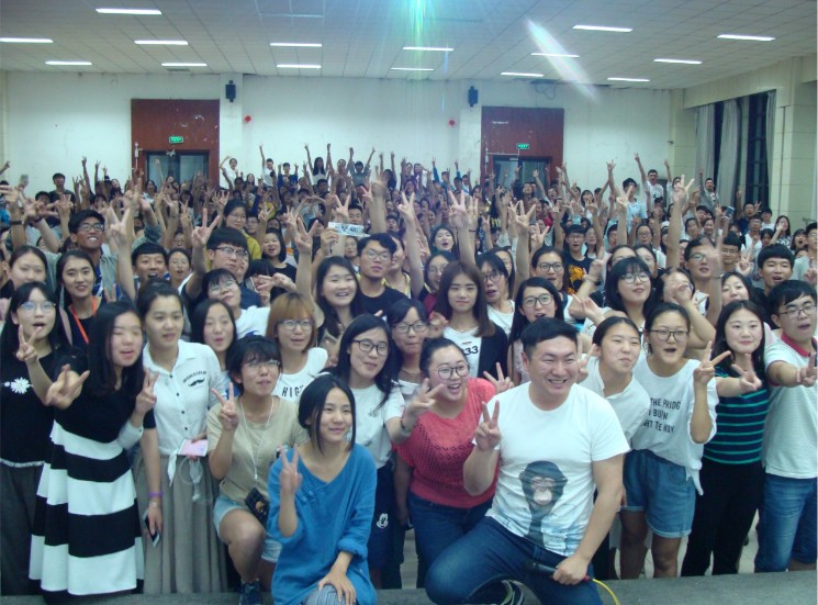 夏天傍晚的章丘,天将黑未黑。同学们热情地在5201教室等待着音乐会的开始。七点钟,在主持人简单的开场白之后,已经长大的小喵孩儿王继阳在一片热烈的掌声中登场。像在大冰的小屋那样,他邀请一些同学围坐在舞台上,边弹边聊边唱。